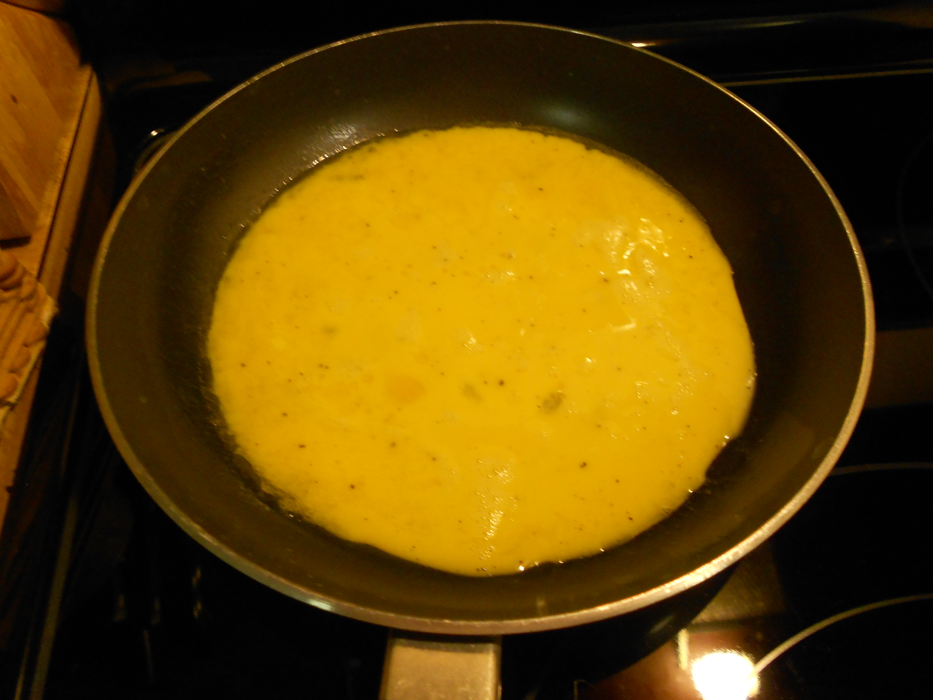 Now I know some of you are going to complain that this doesn’t have the Canadian bacon on it. But I mean…are there people who actually like Canadian bacon? I never use Canadian bacon on mine because I don’t like it, but I have added sausage on occasion. For those of you that would like to add a meat product, I would recommend getting that cooking first so it’ll be done the same time as the eggs. If you want to use bacon it’d be best to microwave it while the eggs are cooking, since cooking it on the stove will take a while and be messy. Honestly, I don’t think it really needs meat though, and it’s likely going to add to the cooking and clean up time.