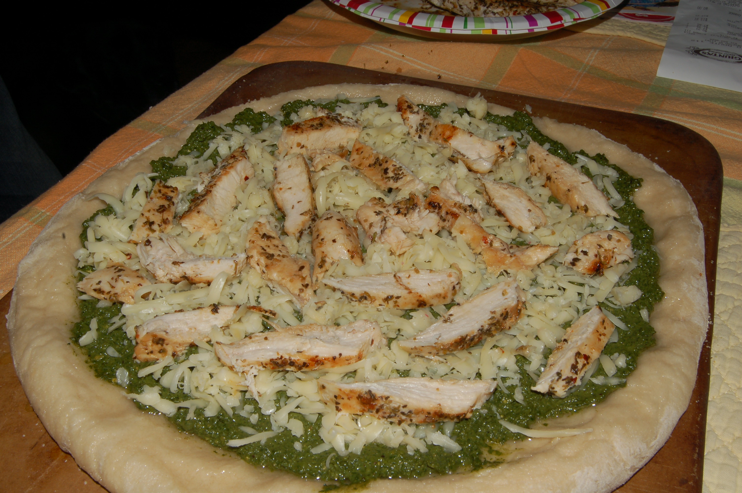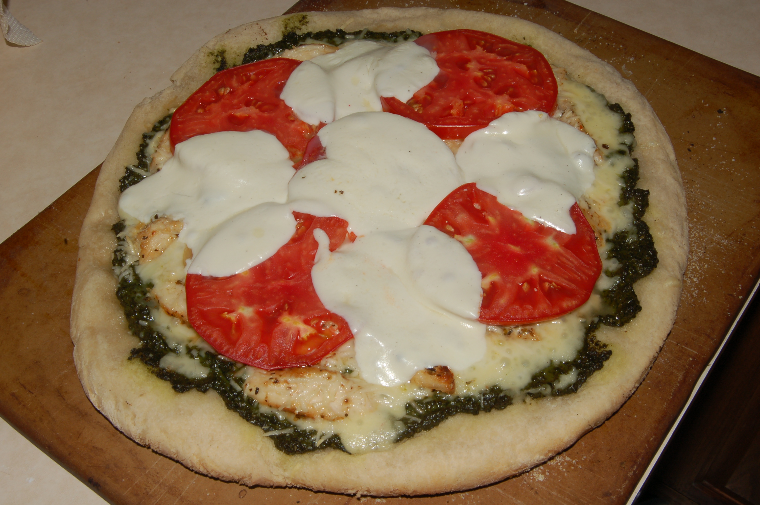 I’m a big fan of Autumn, most of my friends know this. I recently went on about this in my pumpkin spice article. Despite this, September always was a bittersweet month, since Summer is still my favorite time of year no matter what. Halloween and pumpkins are nice, but IMO it’s not quite worth the loss of wearing nothing but t-shirts and driving with the windows down. So before the end of Summer, Meg and I wanted to do one last grilled pizza before temperatures dropped back into the 50s and 60s, making grilling your foods inappropriate and silly (unless of course you live in the south where it’s probably state-law to never go more than a month without igniting your barbecue). We grow lots of basil every summer, and thus make a lot of pesto each year. This combined with the fact that our last grilled pizza almost resembled a panino sandwich in texture made us realize we absolutely needed to make some sort of Tuscan pesto chicken panini inspired pizza. And while this was one of the more tame ideas for a Pizza Lab, it ended up being delicious to the point of borderline sexy.