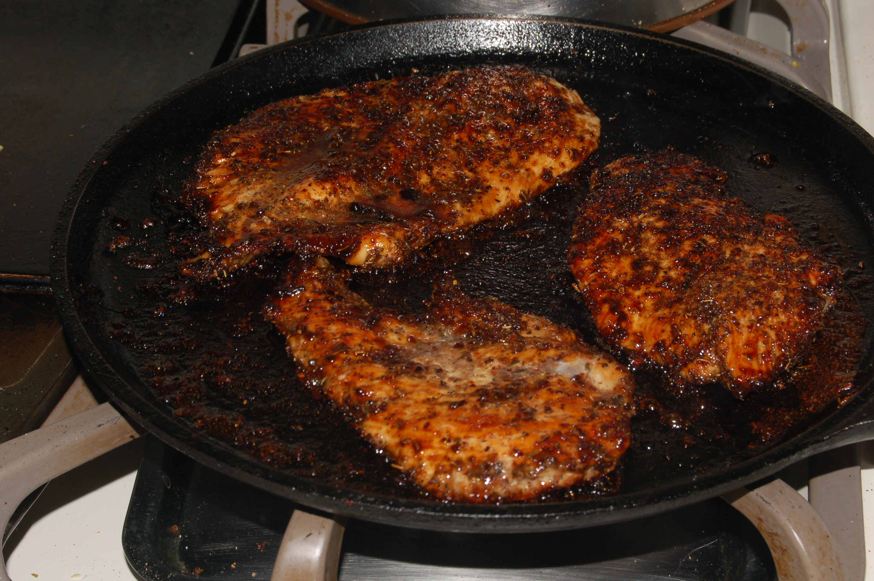 The next order of business involved what to actually put on top of this GF pizza dough. Sautéd and breaded chicken is out, since they involve wheat products. In the very least, meat and individual seasonings/spices are safe for people with Celiac, so grilling or pan-frying the meat is still an option. Conveniently this synced up nicely with the fact I’ve been tossing around the idea for a jerk chicken pizza in my head recently. For those not familiar with the term, jerk seasoning is a part of Caribbean cuisine which involves lots of unique spice combinations like brown sugar, nutmeg, and chili pepper made into a dry rub for grilled/barbecued meats. It results in a very blackened, spicy, but sweet and tangy flavor on the meat, which stays moist and tender inside. As a grilled meat, it remains gluten-free, and the strong flavor lends itself well to a pizza with limited ingredients.