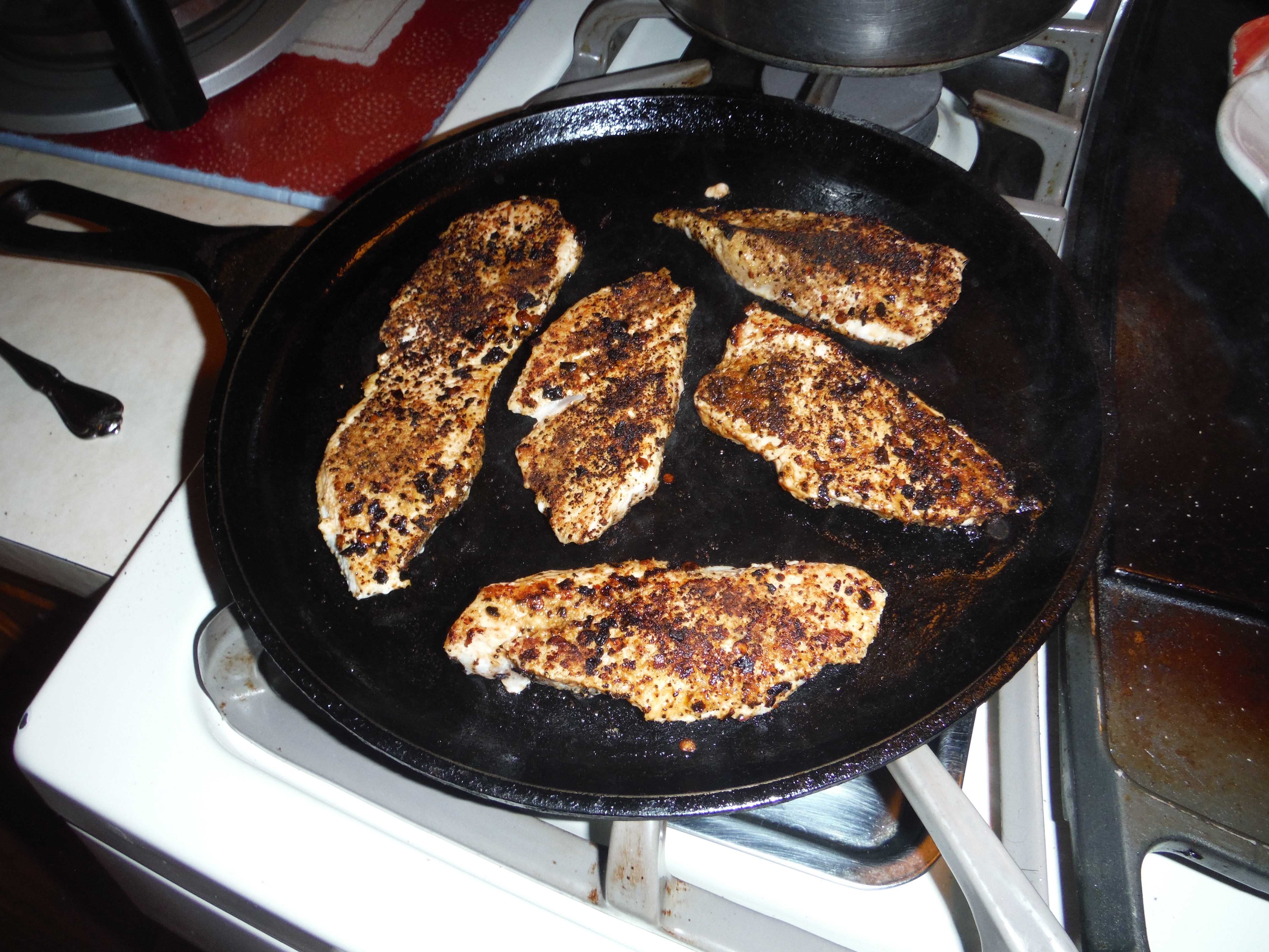 Mix the spices together. Sprinkle the chicken with the spice mix and cook on a skillet 10-15 minutes, or until cooked through.