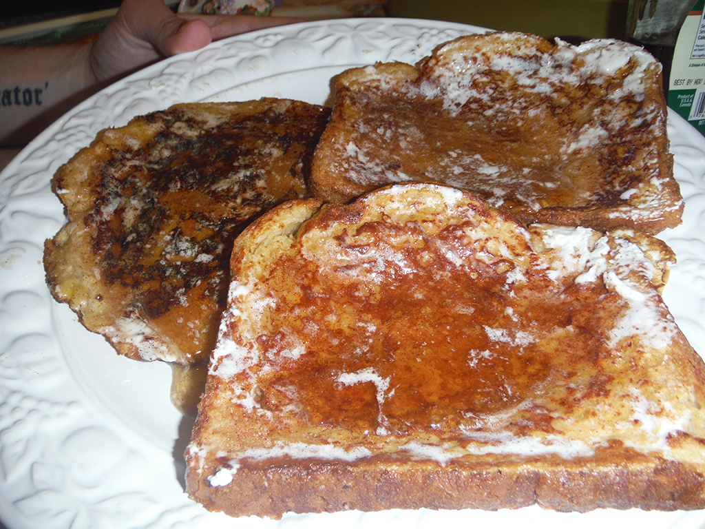 Now, this isn’t to say you must use stale bread. It’s perfectly doable with fresh bread too. The only major factor involve in this is how firm the bread is. If you use flimsy trash bread like Wonderbread, it’s gonna be mushy and hard to cook. If you let it get stale, it’ll be easier to work with. That being said, don’t eat Wonderbread. It barely qualifies as bread. Even so, using higher quality breads like hardy/country white bread, or whole grain breads, etc will be fine on their own without being stale. Plus they’re better for you anyway. Now if you will, direct your attention to our very own quick and easy french toast recipe!