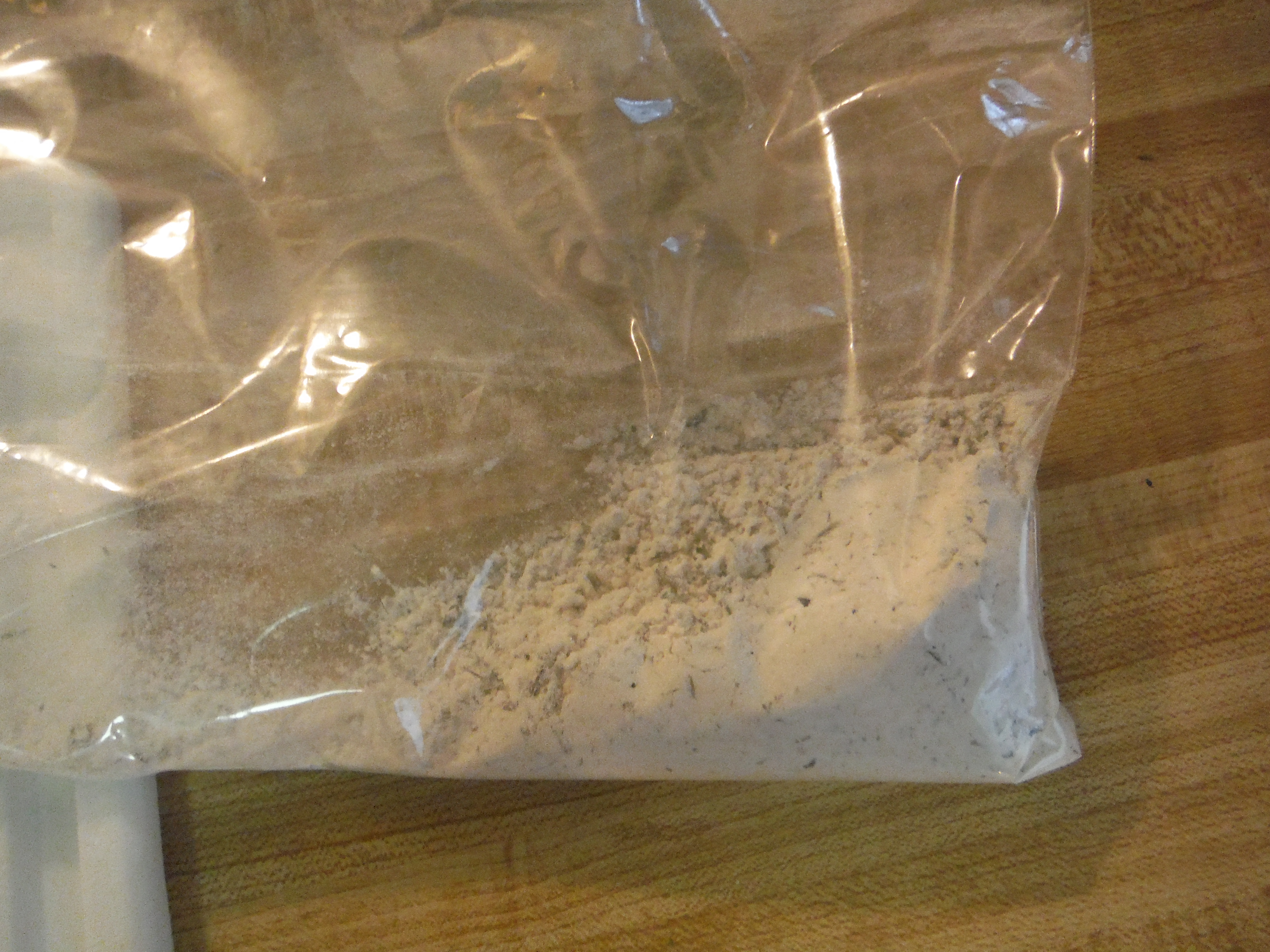 Add the flour, herbs, salt and pepper to a gallon size Ziploc bag.