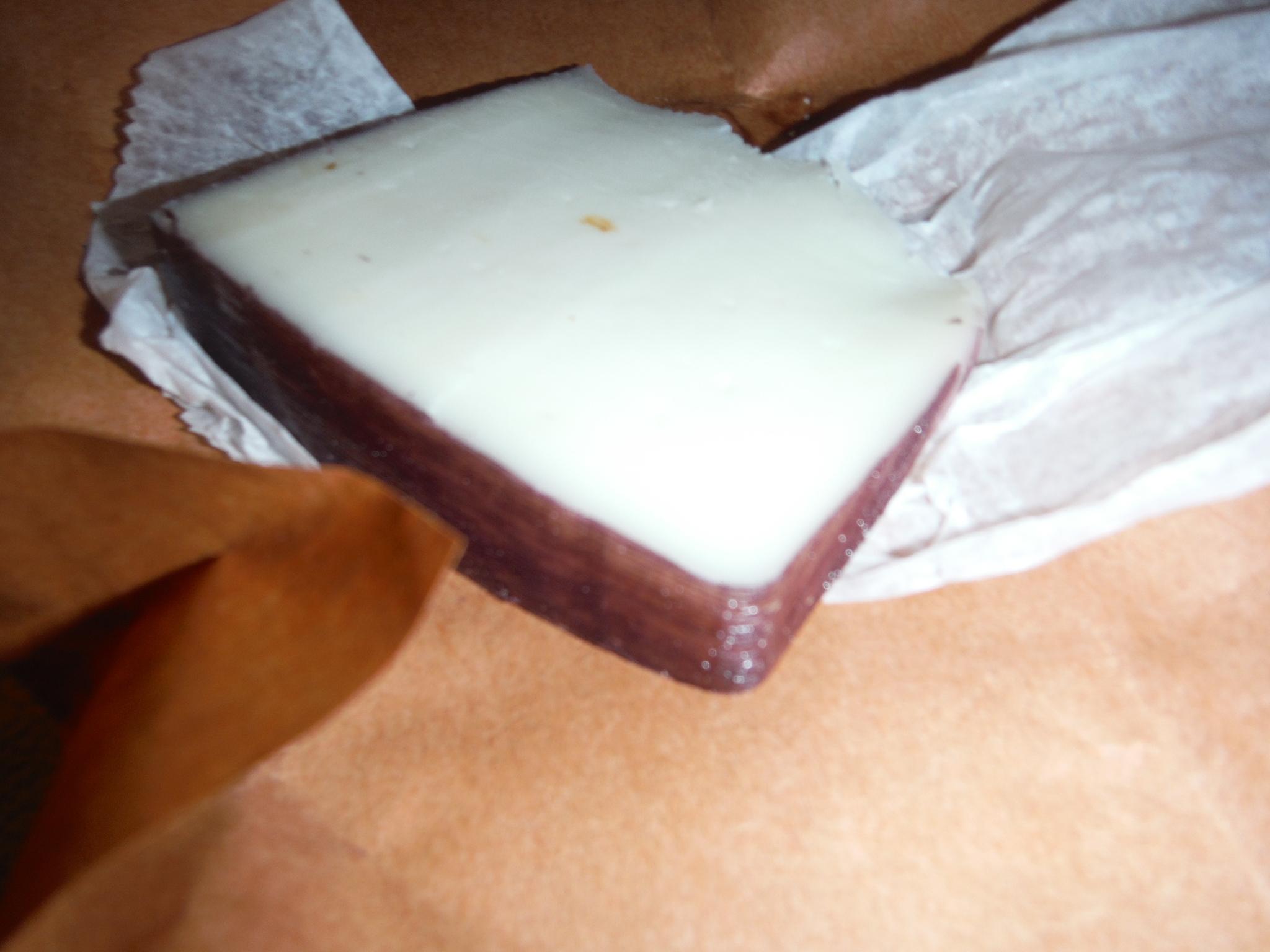 Drunken goat originated in Spain, and as indicated by the name, is made out of goat’s milk. The cheese is cured for 2-3 days in a red wine, which gives it it’s a pretty purple rind. I was first drawn to the cheese because its name was funny (I’m 12 years old inside, okay?), but upon hearing that it’s cured in wine I was a bit skeptical since I’m not the biggest fan of wine. Rest assured however, that it doesn’t taste like wine. It just has a nice fruitiness to it that plays well with the natural tang of goat cheese. It is a semi-soft cheese (think cheddar or swiss if you want an idea of the texture), which makes it easy to cut and eat.