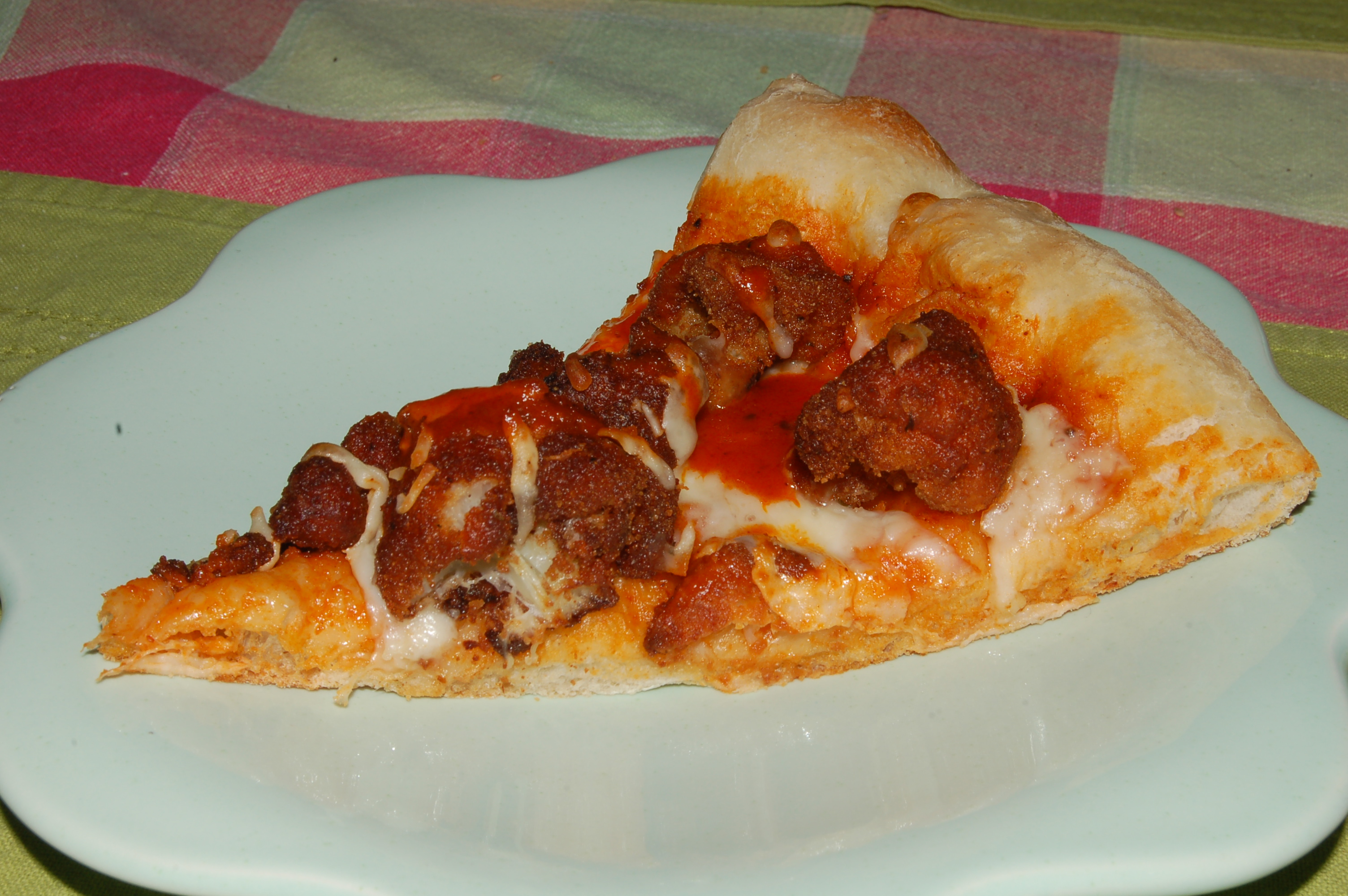 The flavor meanwhile was almost just as convincing too. The fried cauliflower’s taste gets lost in the Buffalo sauce unfortunately, but hey it’s meant to taste like Buffalo in the first place so it’s not much of a fault. All in all however, it really does accomplish it though. When you’re eating this pie, it tastes 100% like its chicken counterpart. The only discernible difference you could notice is the texture of the cauliflower being a bit mushier than chicken, but them’s the breaks when comparing vegetables to meat. But really, this pizza is a beautiful thing, and I really want to make it again for any of our veggie-eating friends who’ve never partaken of the forbidden fruit of Buffalo chicken pizza. It’s straight up a vegetarian Buffalo pizza and it tastes great no matter what you like eating.