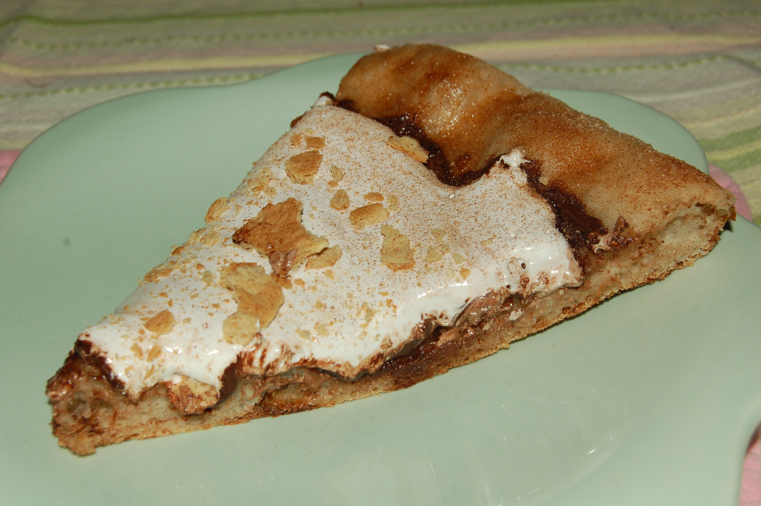 I don’t want to sound too over the top, but honestly this is potentially the greatest dessert pizza we’ve made to date. That’s impressive considering that we’ve made almost ten of them so far, and we seemed to have hit a lull in quality with them before this. It tastes completely like a s’more and yet, somehow even better. It’s kind of like the excess of chocolate and the extra creamy marshmallow fluff combine with the buttery crust to form a super-s’more. Not size-wise, but rather it managed to taste more like what s’mores are supposed to, than most real s’mores. Don’t even ask me how that works, it just does. One final point is that it saved incredibly well. A quick trip to the microwave made it taste just as good as it did on day one.