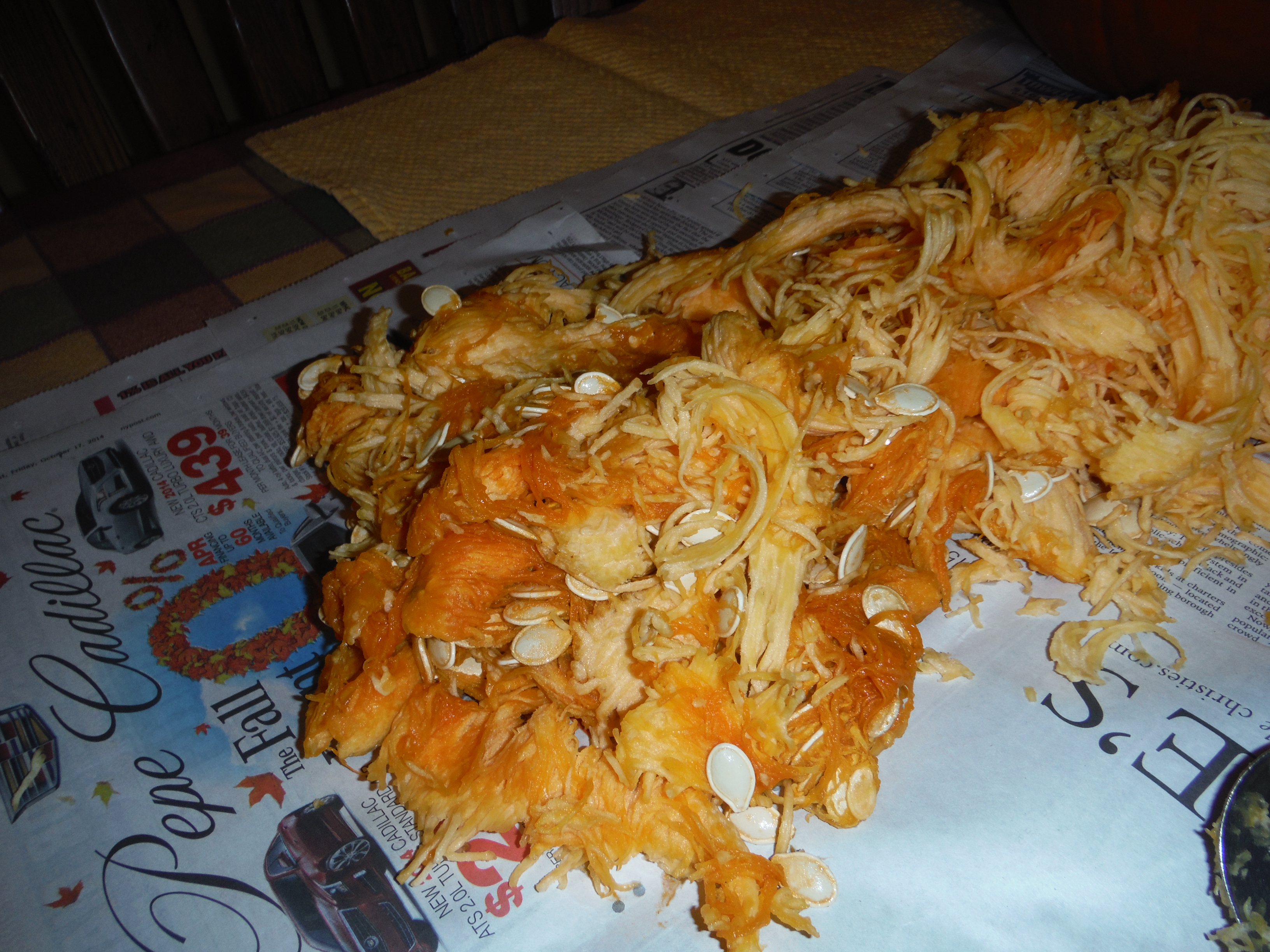 First you’re going to have to separate the seeds from the rest of the pumpkin guts.