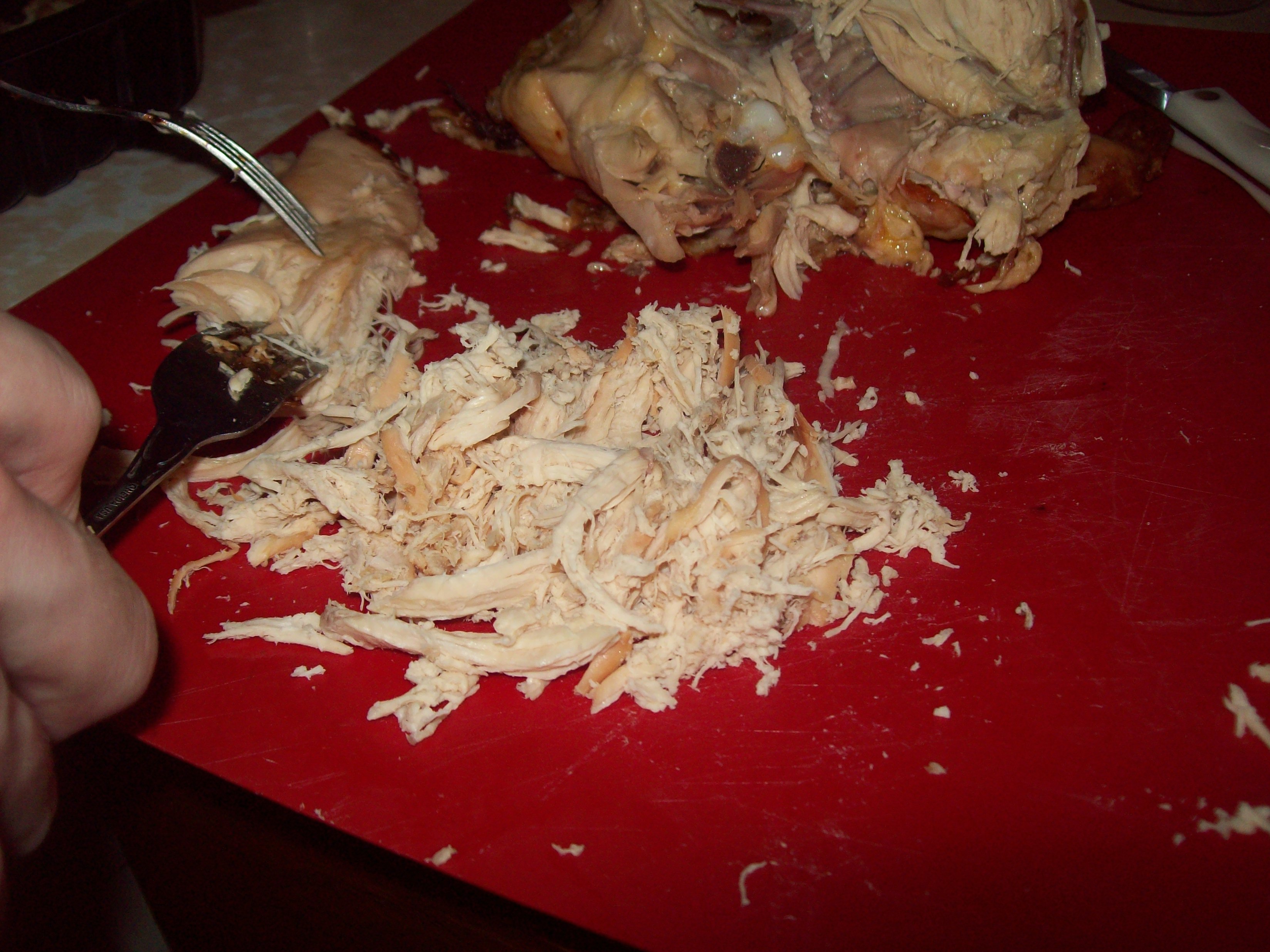 As you can see here, we’ve got some shredded chicken. That’s good. But believe it or not, that pile took pretty much like 10 seconds to create. And it was only like a fifth of what came off the entire chicken. So now you see where I’m going with this.