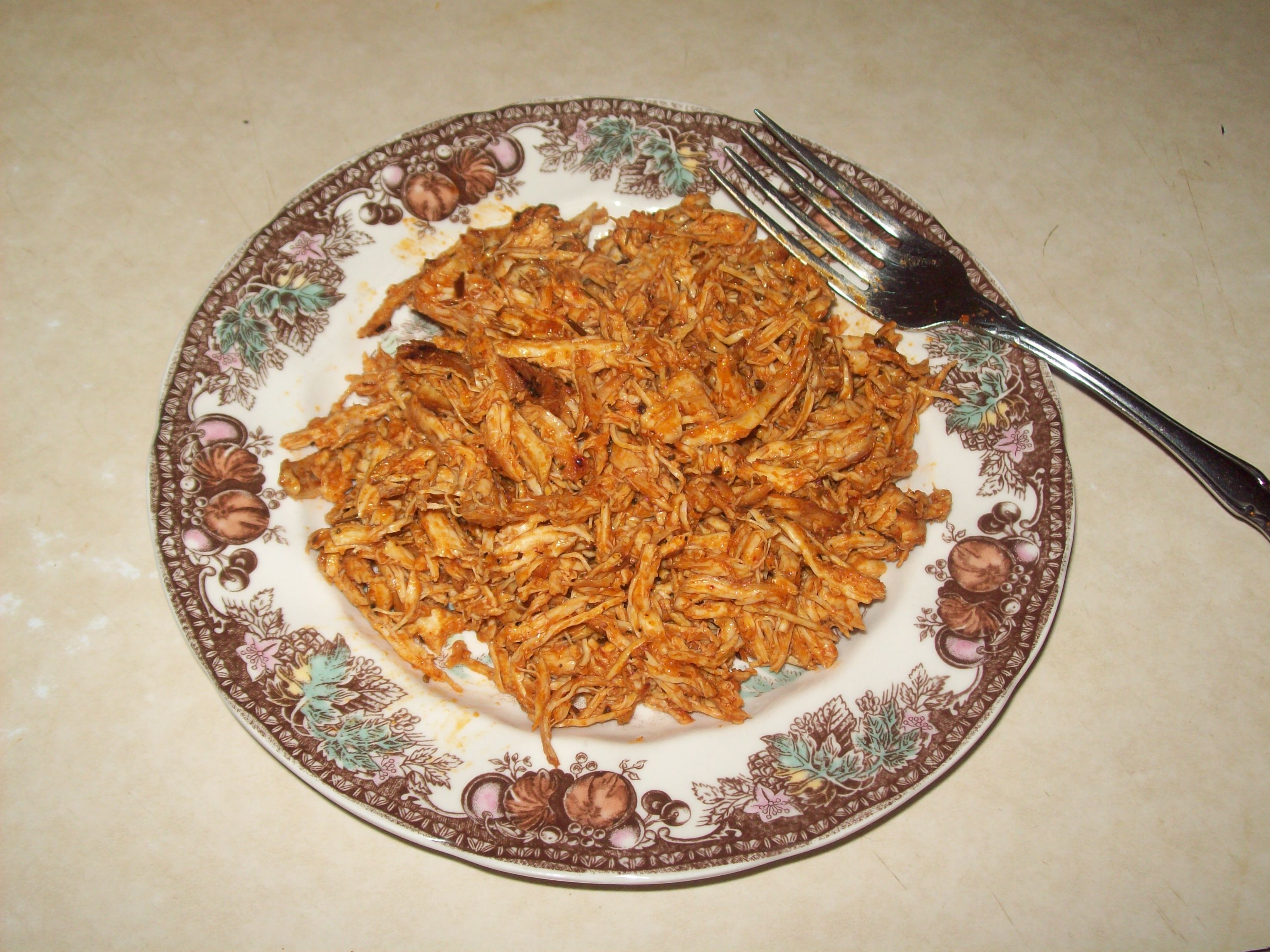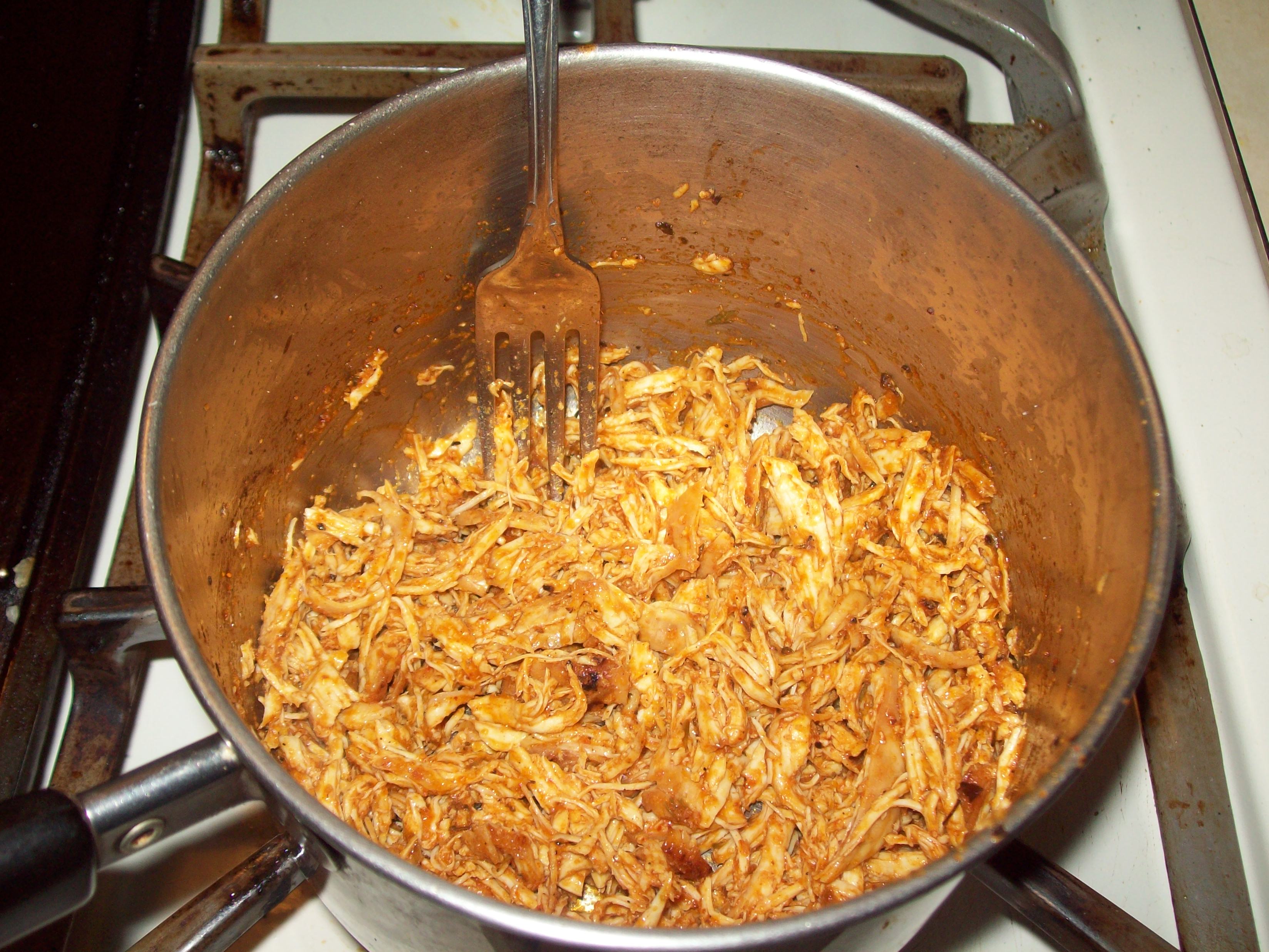 As a heads up, you’re best bet would be to buy a rotisserie chicken from the supermarket, and shred that, as I mentioned in my post about pulled/shredded meats. It’s fast, simple, and best of all cheap!