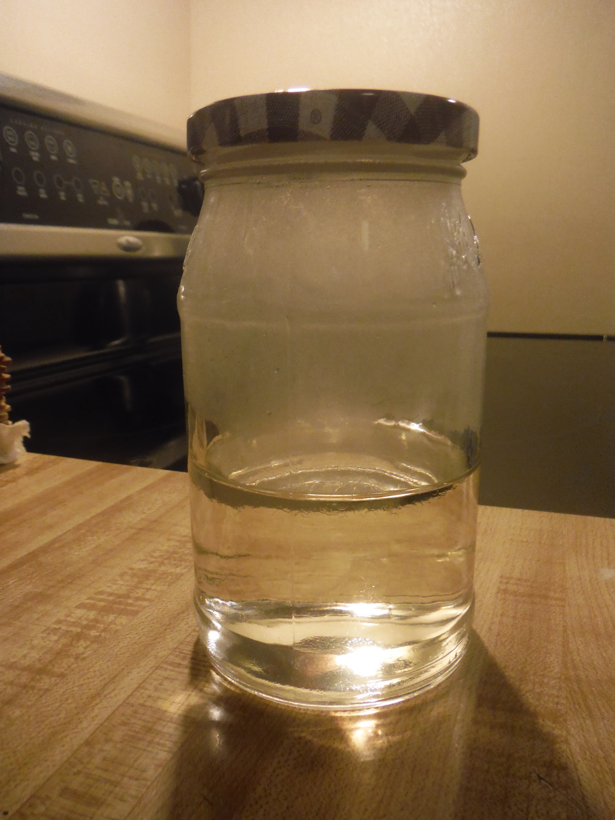 Once your syrup is done, let it cool a bit and then transfer to a storage container. Ideally if you have a squeeze bottle to keep it in that’s the most convenient way to store it. I did not have one, so I just put it in a jar.