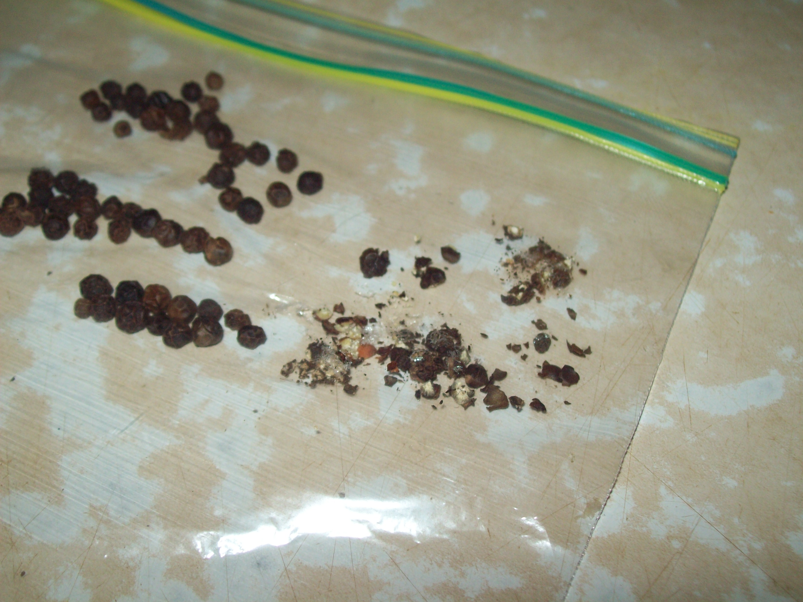 - Start by placing your needed peppercorns into a plastic bag, as seen above. Leave the top of the bag open just a little bit, to let air escape.