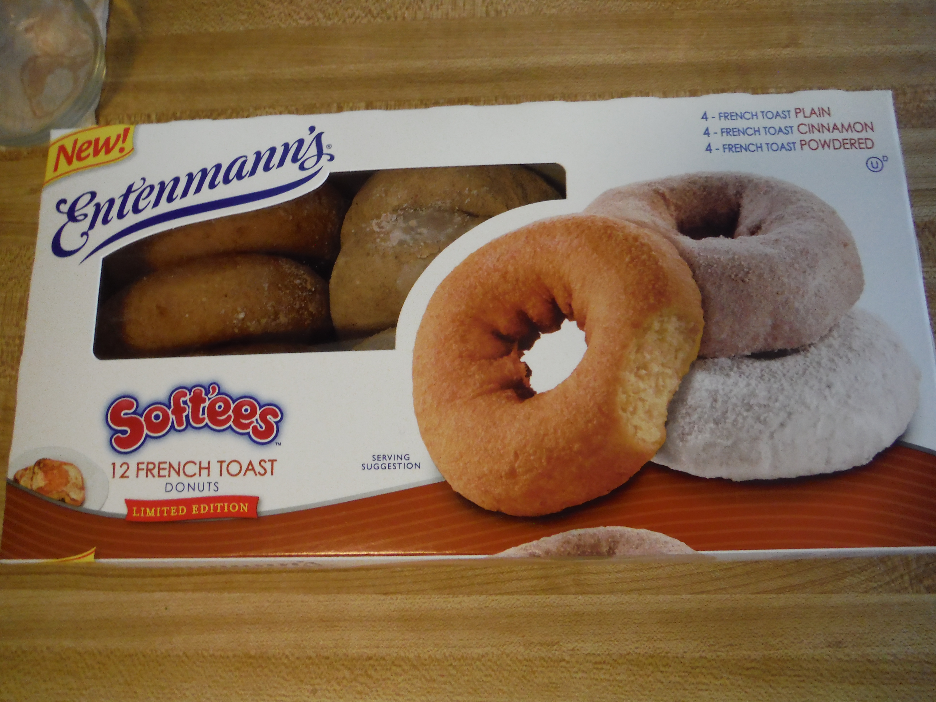 I first saw Entenmann’s French Toast Donuts in the grocery store last week, and since they happened to be on sale I decided I couldn’t pass them up. They sounded too yummy not to try, and obviously I always like things better when they’re on sale. Besides, I’m all for interesting breakfast food mash-ups (we did come up with francakes after all). I could already faintly smell the hints of French toast when I picked up the box, so I was excited to give them a taste. So, how’d they do?